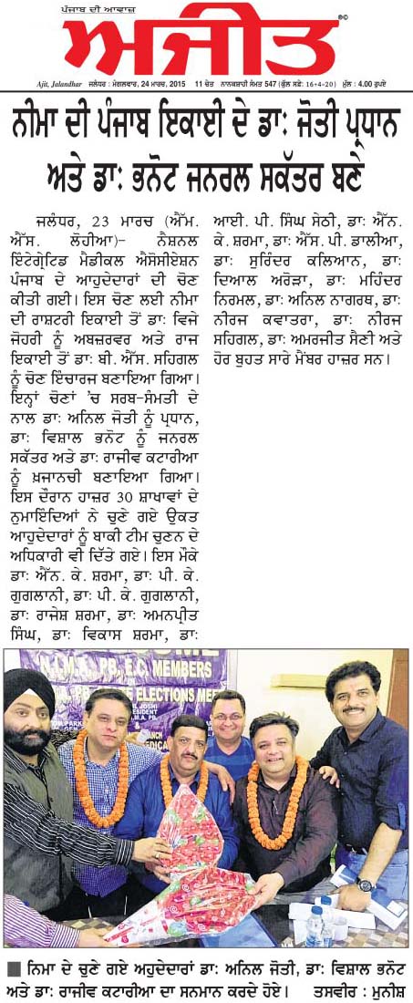 Congratulation to Dr. Parvinder Bajaj, Dr. Anil Nagrath and Dr. Vipul Kakkar for unanimously elected as President, General Secretary, Treasurer respectively.