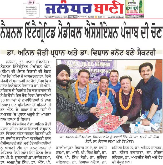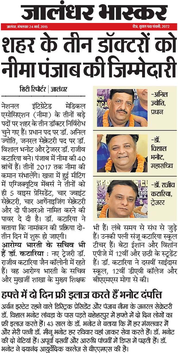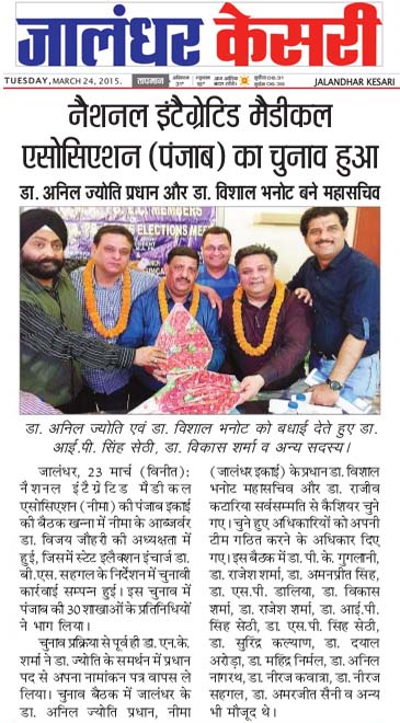 Congratulation to Dr. Anil Jyoti, Dr. Vishal Bhanot, Dr. Rajiv Kataria for unanimously elected as President, Secretary, Treasurer respectively.